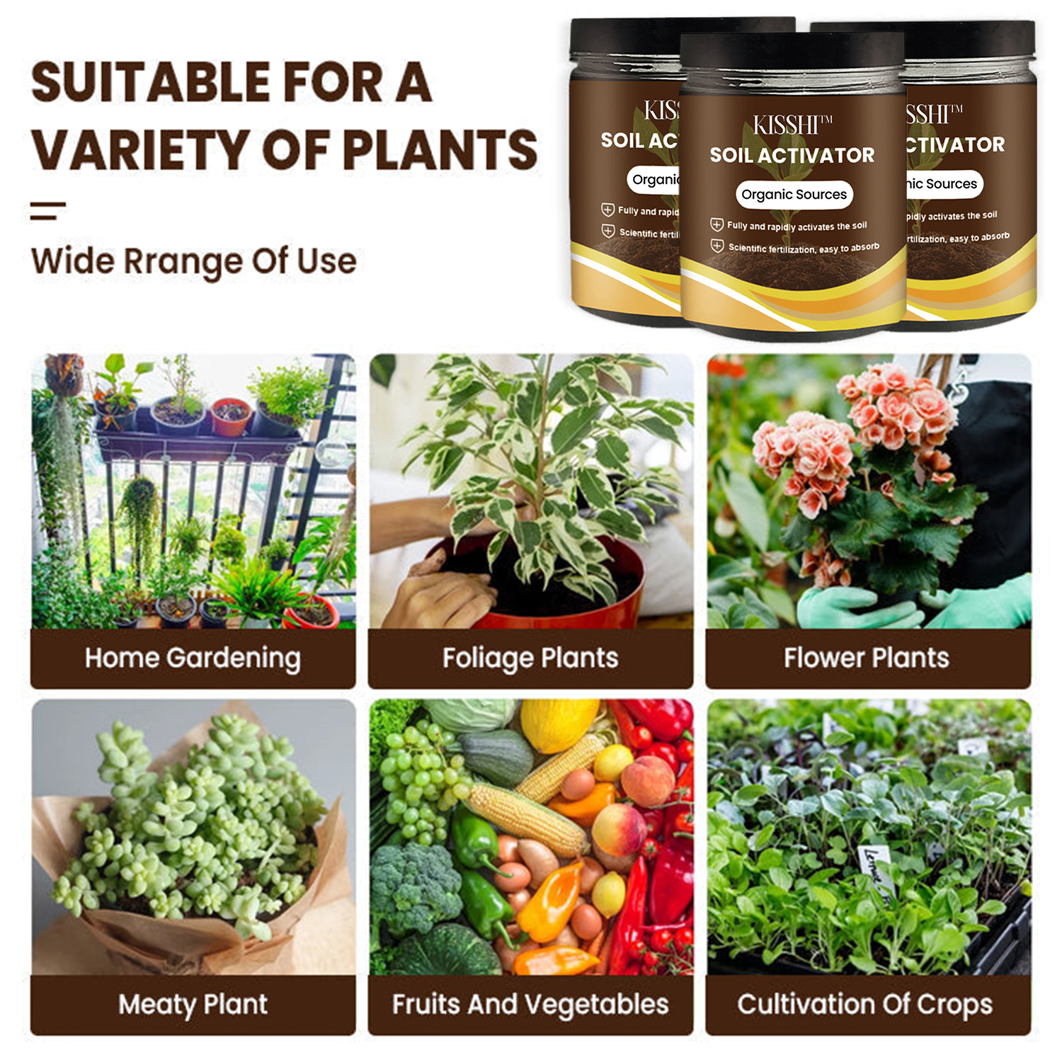 Many people diligently feed their plants, yet results often fall short of expectations despite using various fertilizers and treatments. The underlying issue is frequently poor soil quality. KISSHI™ Soil Activator addresses this root problem by transforming the soil into a nutrient-rich environment. This comprehensive solution enhances the soil's ability to support plant growth, ensuring that your efforts and inputs yield the healthy, thriving plants you desire. Plus, it's incredibly easy to use—simply mix it with water when watering your plants for effortless application.